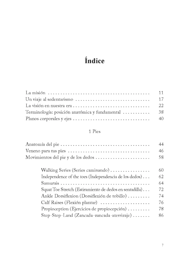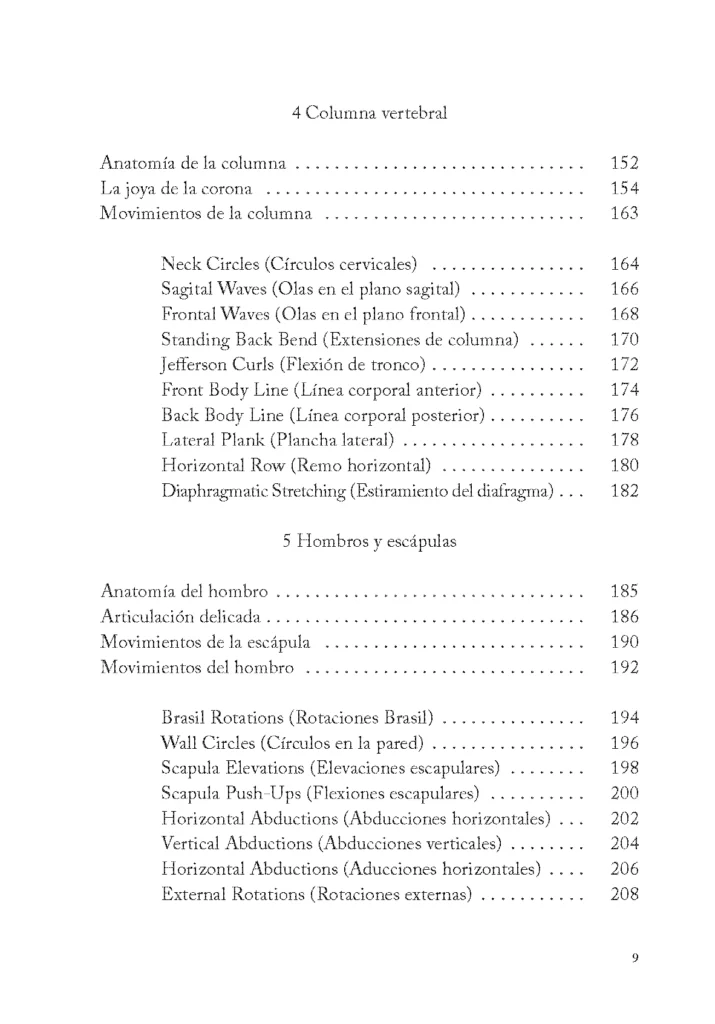 También, ofrece un protocolo integral de ejercicios de movilidad y fuerza de las principales articulaciones: · Pies · Rodillas · Caderas · Columna vertebral · Hombros y escápulas · Codos, muñecas y manos
